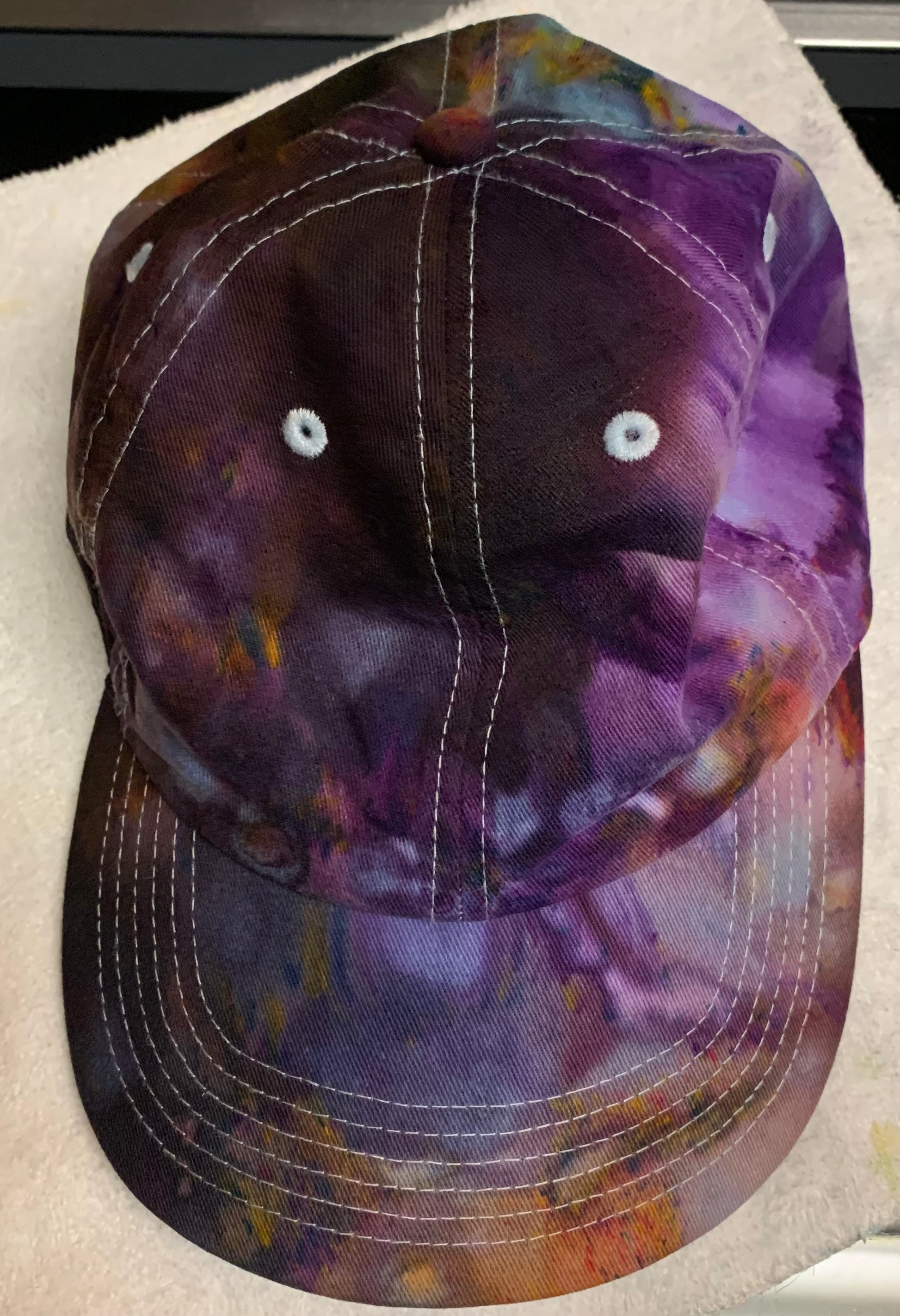 This is a one of a kind icy dyed baseball cap. It is a very good quality cap that is adjustable. There is not another one that looks exactly like it. 6 panel cap one size fits most. Thanks for stopping by to check out my items.